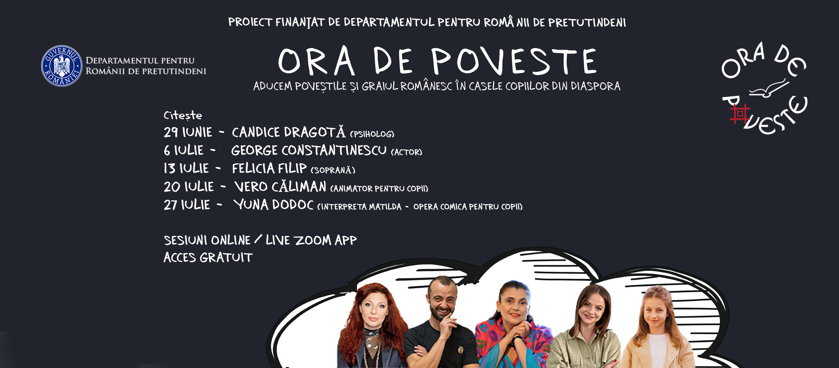 Sesiunile de lectură ale poveștilor românești vor avea loc în perioda 29 iunie – 27 iulie, în fiecare sâmbătă, și vor fi adaptate la fusurile orare din Europa și Statele Unite.